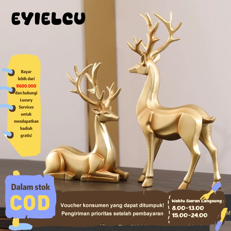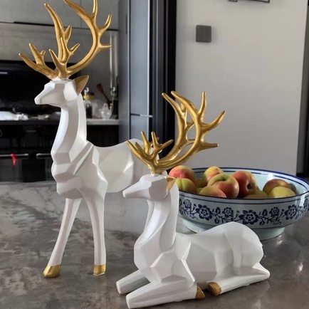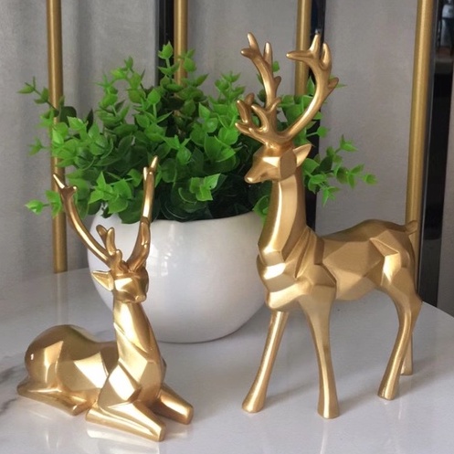 PAJANGAN MEJA Eyre (Jaminan Kualitas )2 Pcs Nordic Natal Rusa Patung Geometris Resin Duduk Berdiri Rusa Rusa Patung untu