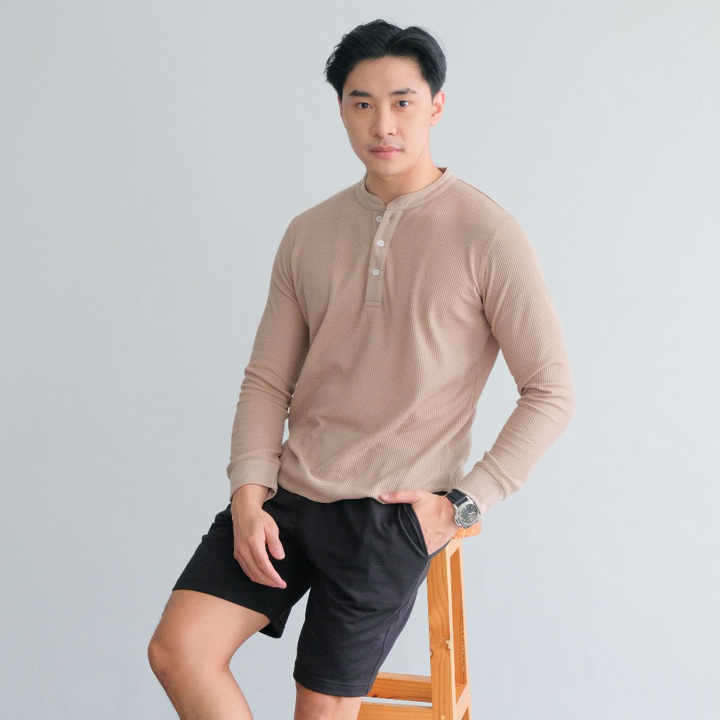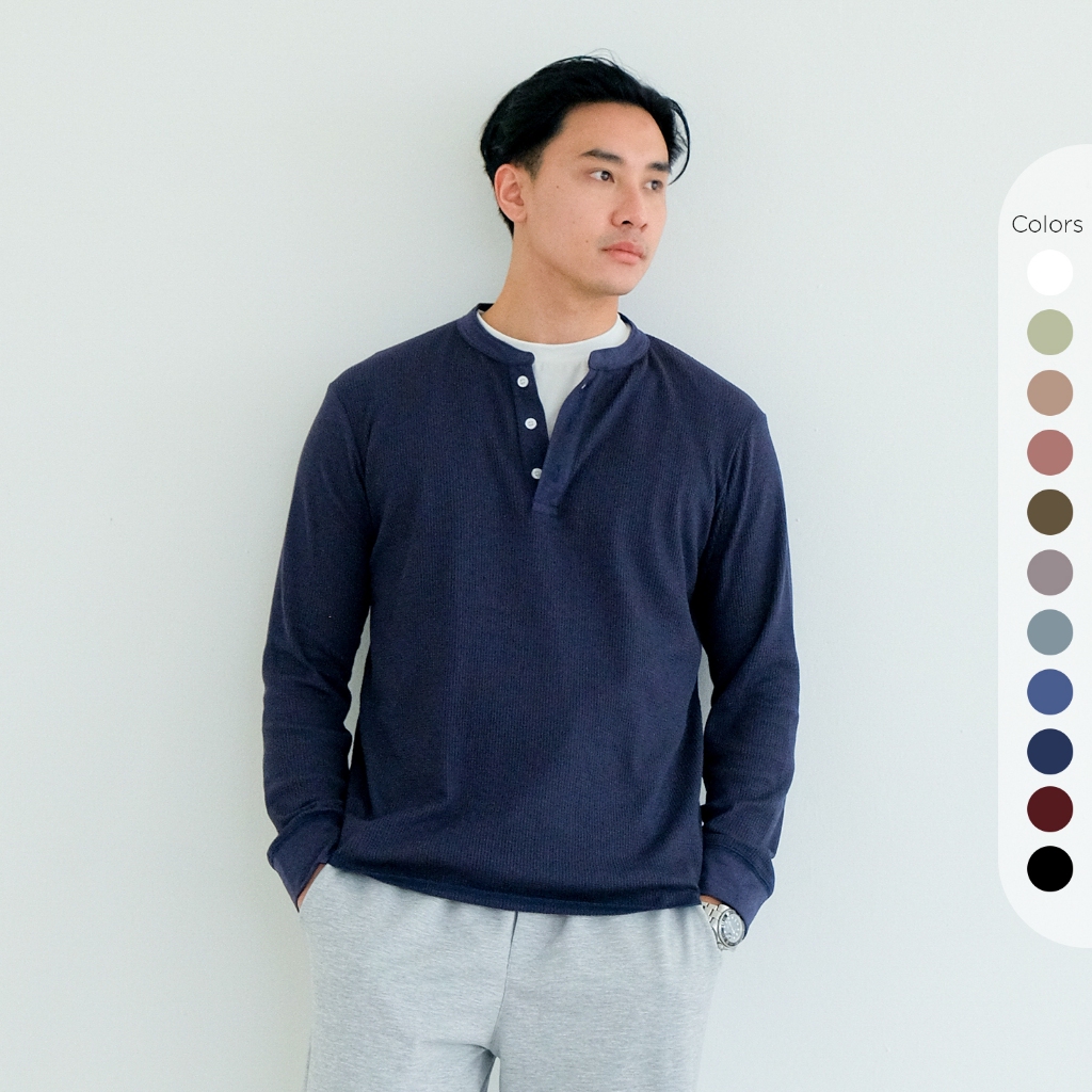 Isla for Men Smith Waffle Henley Neck T-Shirt Long Sleeve - Atasan Pria Lengan Panjang - Baju Pria - Baju Laki-laki