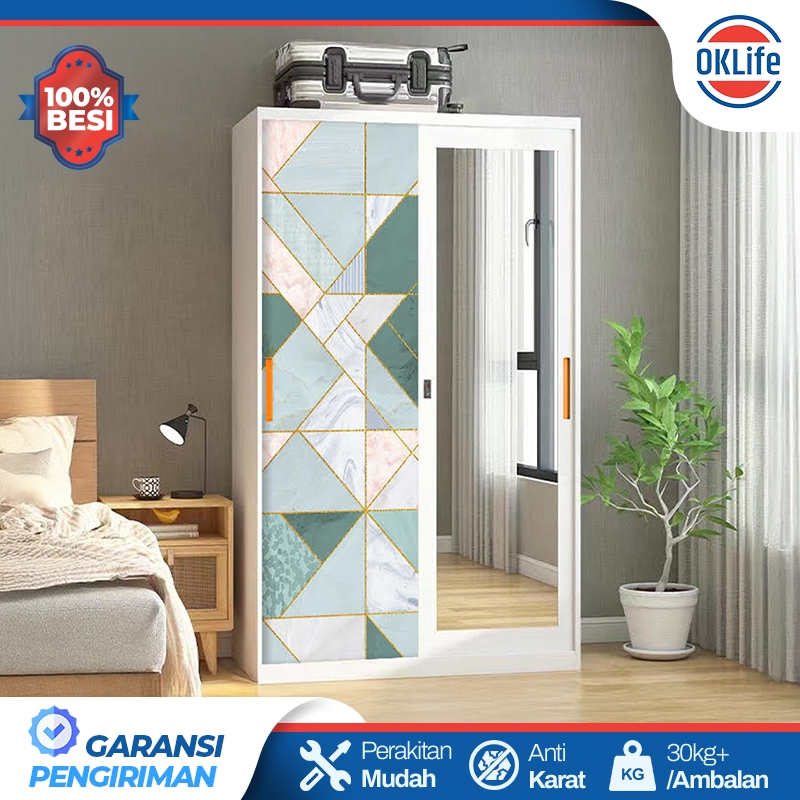 LEMARI BESI SLIDING 2 PINTU LEMARI BESI PAKAIAN LEMARI BAJU MINIMALIS FULL MOTIF & FULL