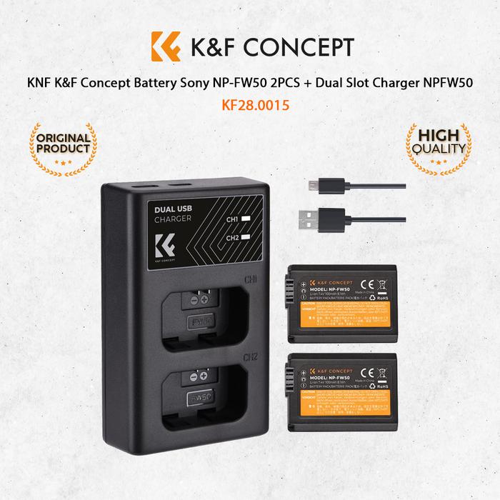 KNF K&F CONCEPT BATTERY SONY NP-FW50 2PCS + DUAL SLOT CHARGER NPFW50 - CHARGER ONLY