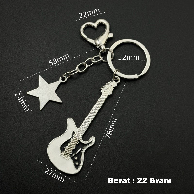 GalleryCantiQ - Gantungan Kunci Tas Motor Mobil Motif Gitar Bintang Hati Liontin Keychain KEY19