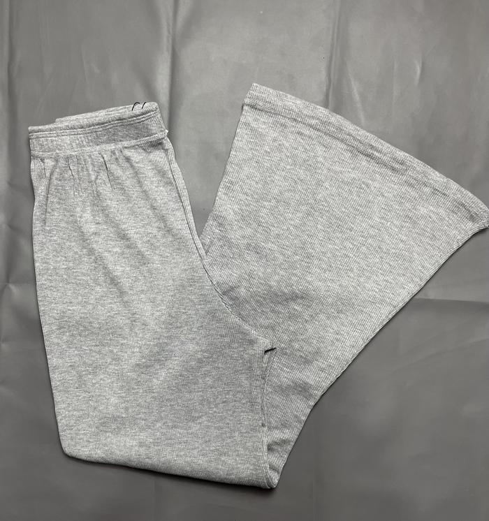 Flare Pants Cutbray Rib Knit Stretch Wanita Celana Panjang Highwaist Casual - Hitam