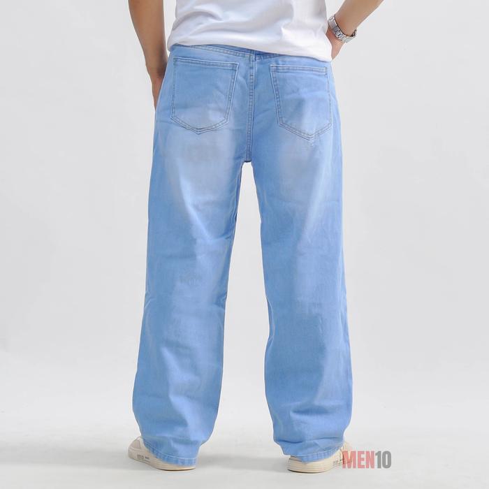 Celana Jeans Pinggang Karet Tali Wide Leg Wisker Lebar Gombrong Skena Whisker Pria Loose Fit Jumbo Big Keren Bahan Denim