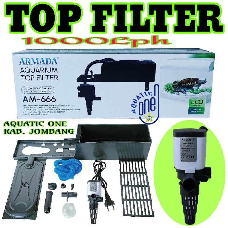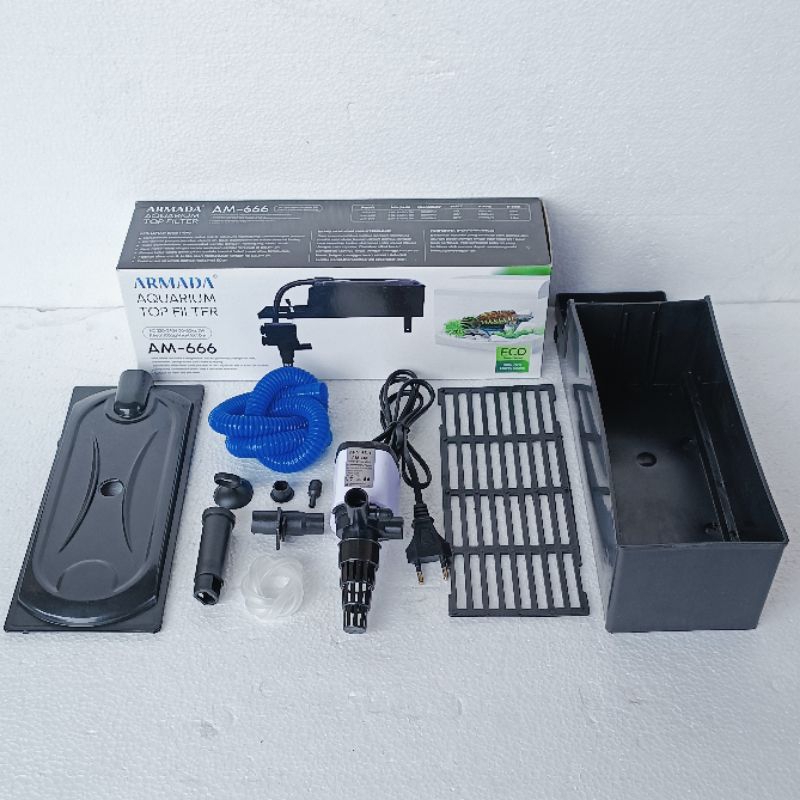 ARMADA AM-666 : top filter box atas waterpump aquarium water pump akuarium full set komplit ph 1000 Lph liter per jam