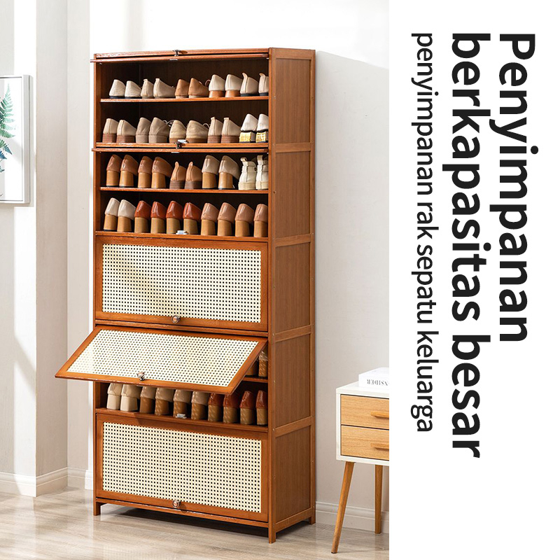 Rak Sepatu Rotan Lemari Sepatu Kayu Rak Sepatu Rumah/emari sepatu susun tertutup/Lemari Sepatu Kayu/Lemari Sepatu
