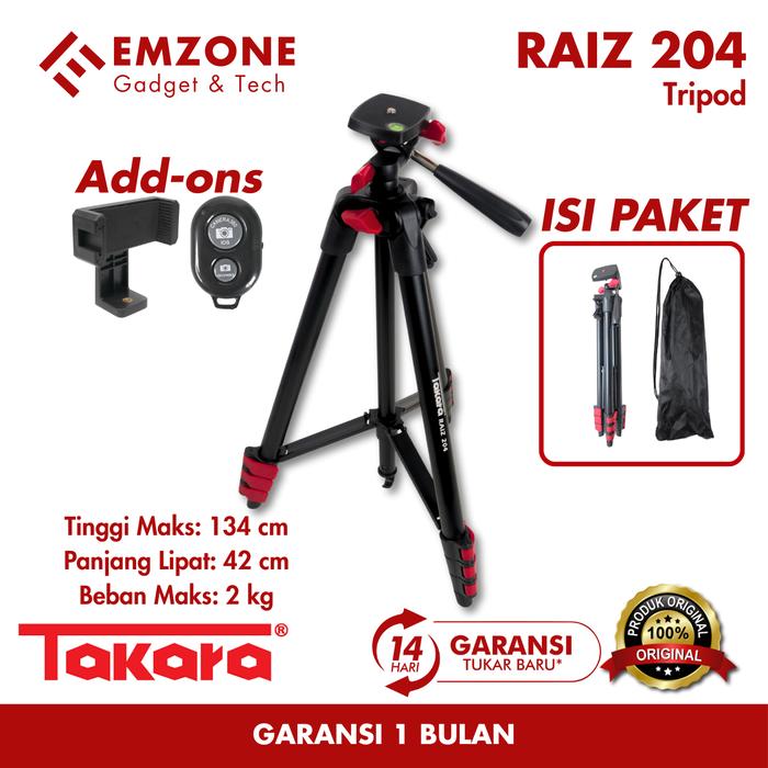TRIPOD TAKARA RAIZ 204 LIGHT WEIGHT TRIPOD CAMERA SMARTPHONE REMOTE HOLDER KAMERA - TRIPOD ONLY, TANPA REMOTE