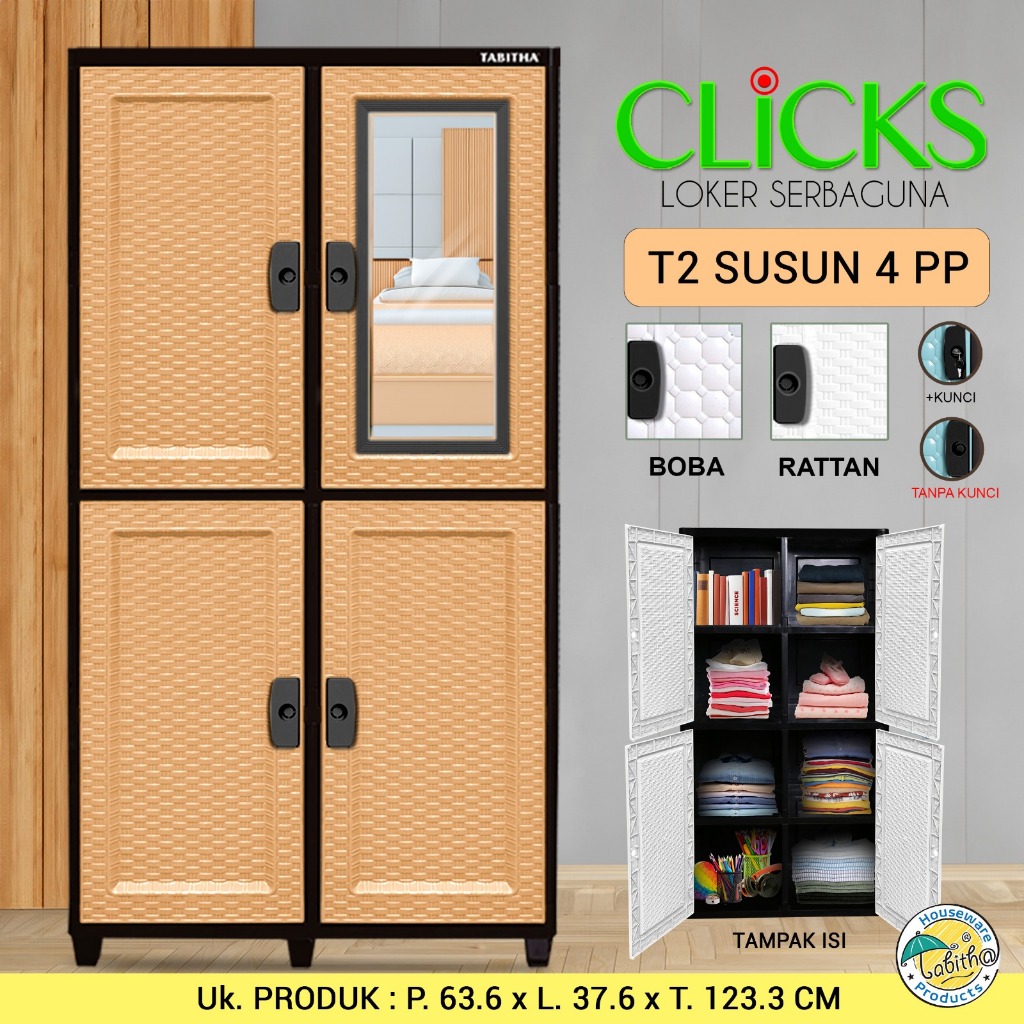 Lemari Pakaian Jumbo Thabitha T2S4 tipe Rotan Kaca Kunci ()