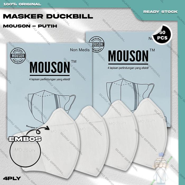 Masker Duckbil MOUSON 4Ply isi 50Pcs Putih Hitam Abu Warna Duckbill 4 Ply Earloop Dewasa tali karet elastis warna