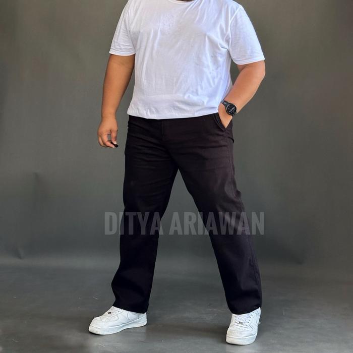 Celana Panjang Chinos Jumbo Strech Melar Cotton Carbon Nyaman Pria Army Casual Tebal - Black, 40