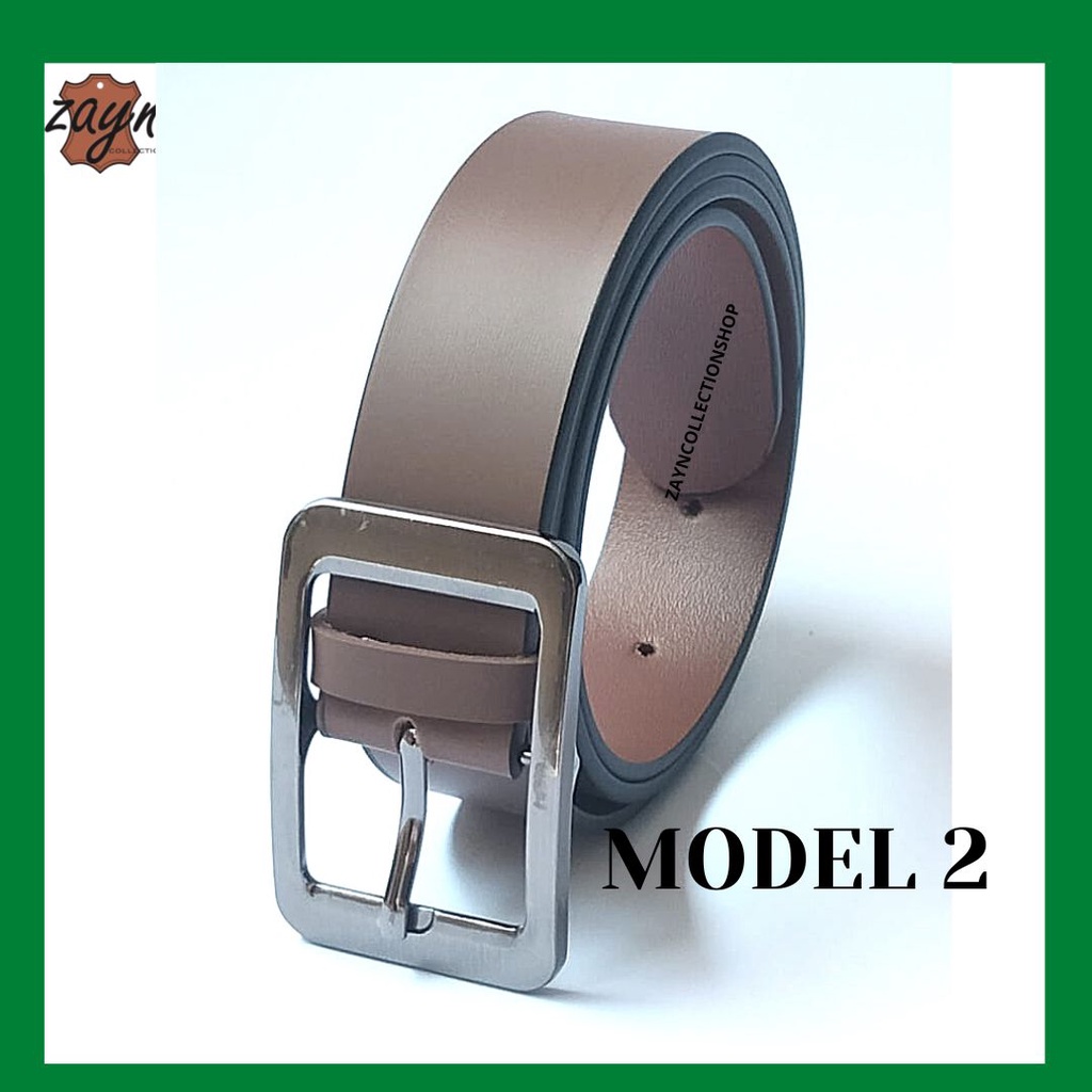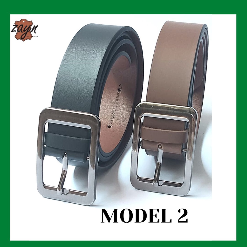 Ikat Pinggang Unisex Kepala Kotak Model Tusuk Jarum Gesper Pria Wanita Kulit Polos Hitam