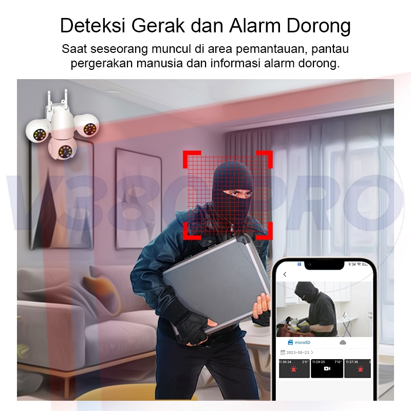 V380 Pro Cctv 3 Lensa 3 Layar Pembicaraan Dua Arah Penglihatan Malam Penuh Warna Deteksi Gerak Ai