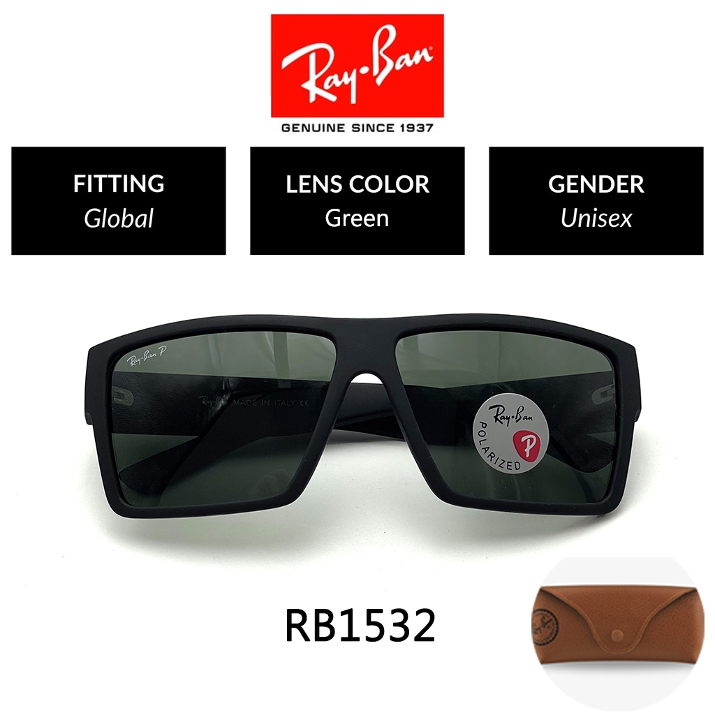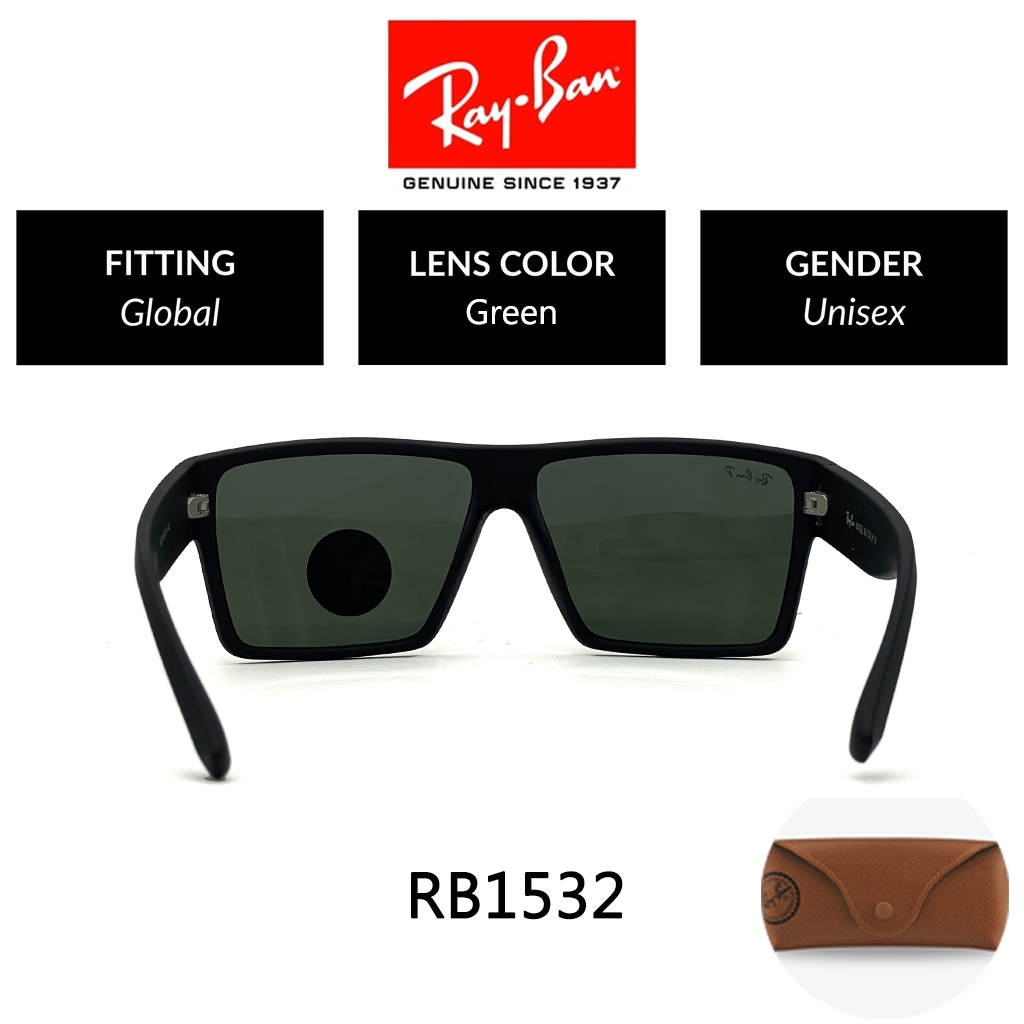 100 PERSEN Original Kacamata Hitam Ray-Ban Original RB1532 Polarized Black Green Uni Sunglasses