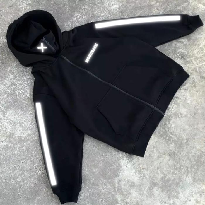 Sweater Hoodie Balaclava Menyala Reflective Zipper Jaket Boxy Reflektif Nyala Xtreme Unisex Pria Wanita Terbaru 2025 - X