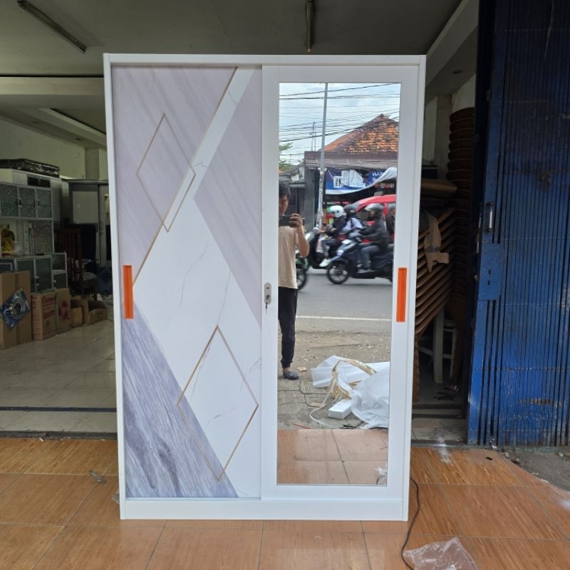 (Free Ongkir) Lemari Pakaian Minimalis Besi 2 Pintu Sliding Jumbo