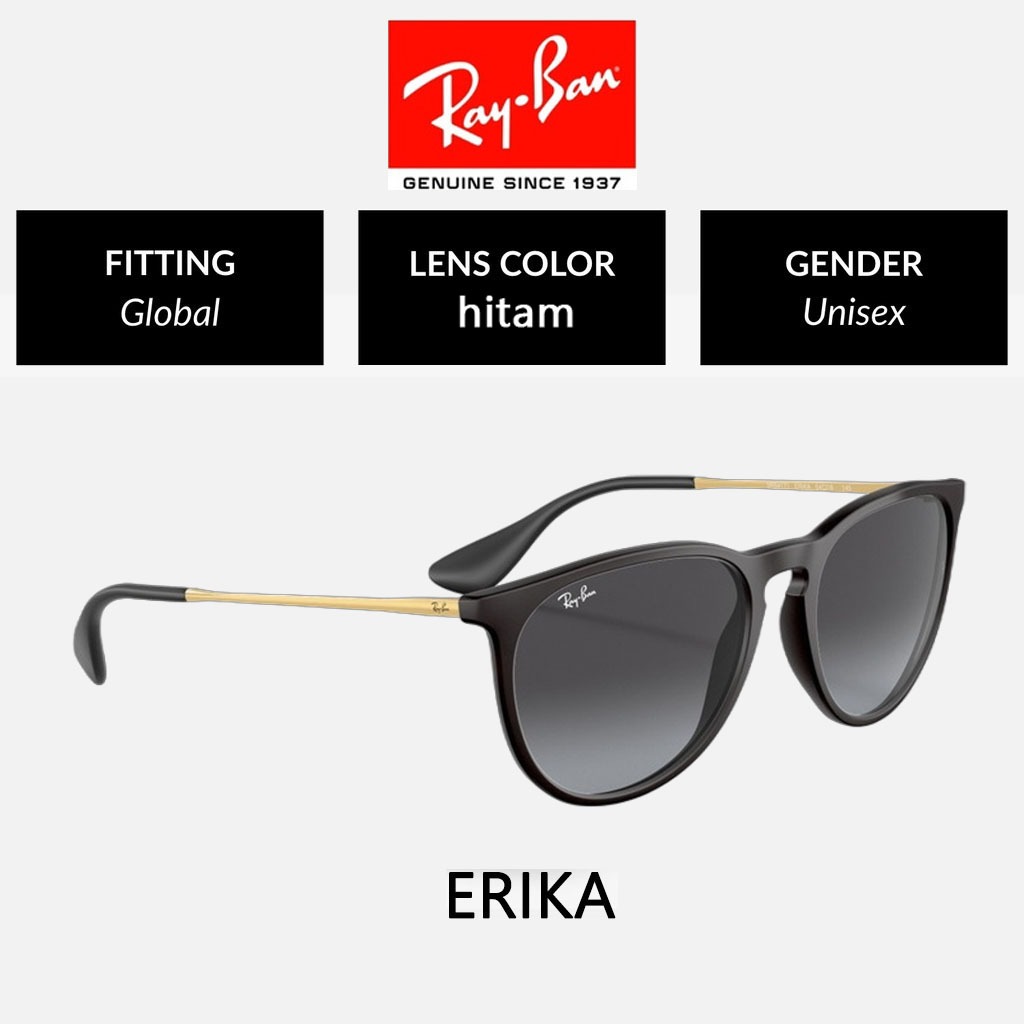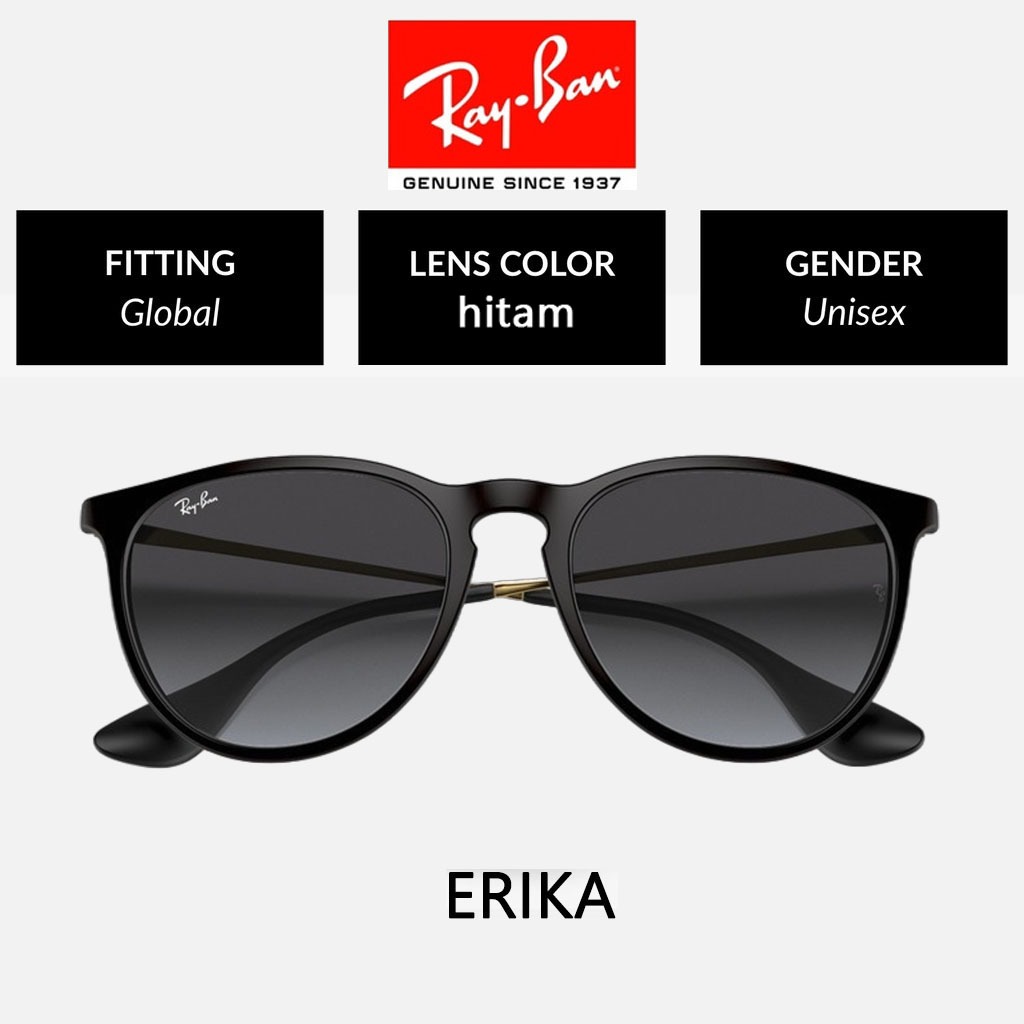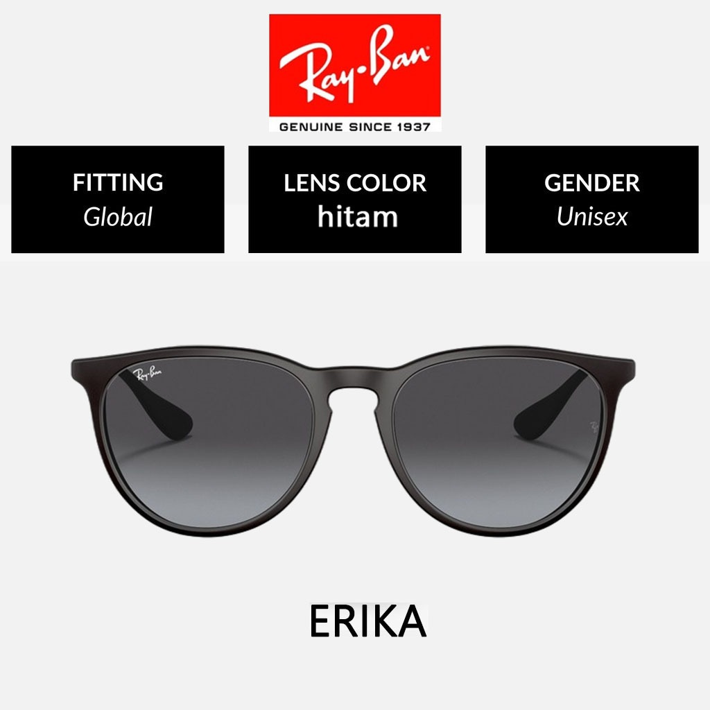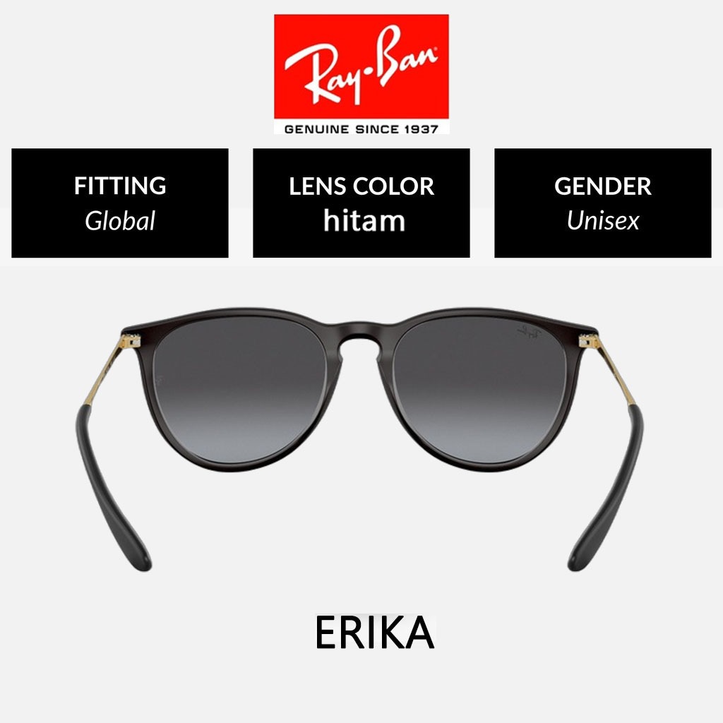 100 PERSEN Original Kacamata Hitam Ray-Ban Erika RB4171 Black Green Uni Sunglasses