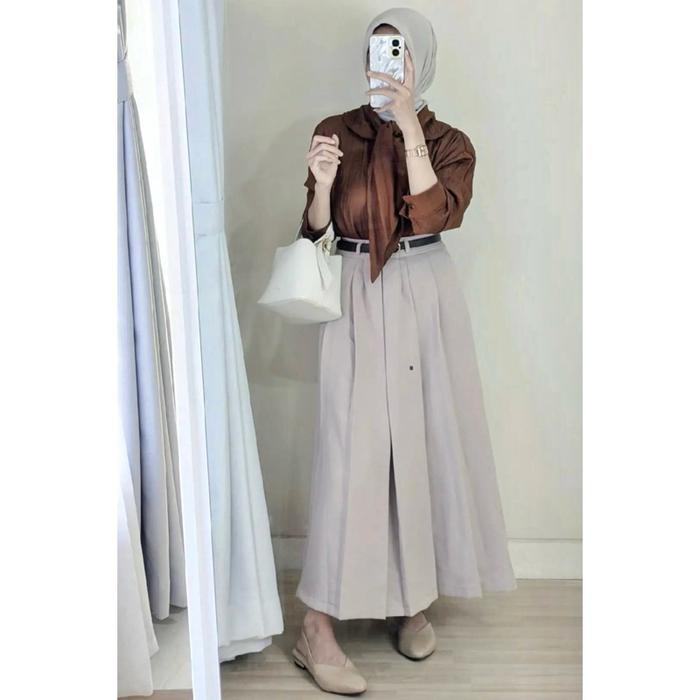 Blouse Kemeja Polos Oversize Atasan Basic Wanita Polo Linen Nami - Nami Maroon