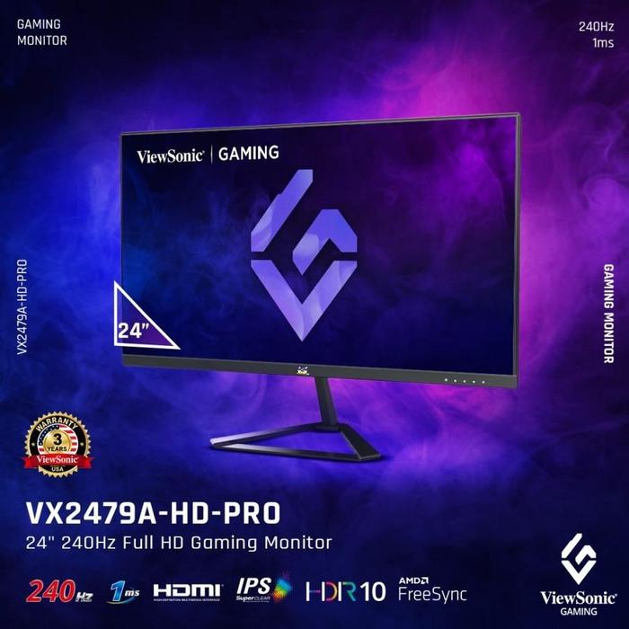 MONITOR GAMING 240HZ LED VIEWSONIC VX2479A-HD-PRO 24" SUPERCLEAR IPS 1080P FHD 240HZ 1MS