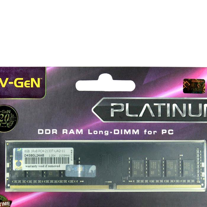 RAM DDR4 V-GEN PLATINUM RESCUE 8GB PC17000/2133MHZ PC19200/2400MHZ PC21300/2666MHZ PC25600/3200MHZ LONGDIMM MEMORY PC VGEN - PC17000/2133MHZ, PLATINUM
