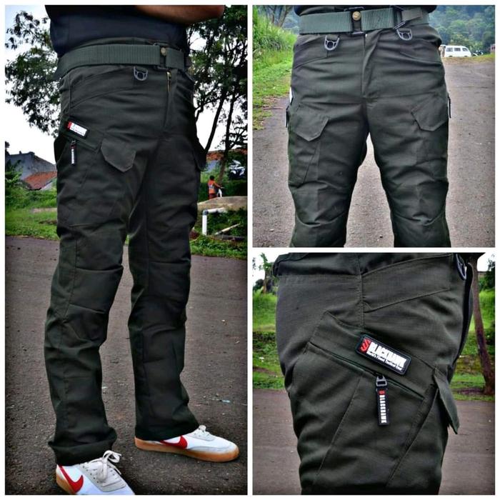 Celana Cargo Tactical Celana Panjang Pria Dewasa Katun Santai Polos Cowok - Hitam Panjang, 28