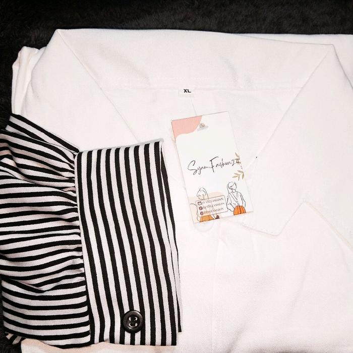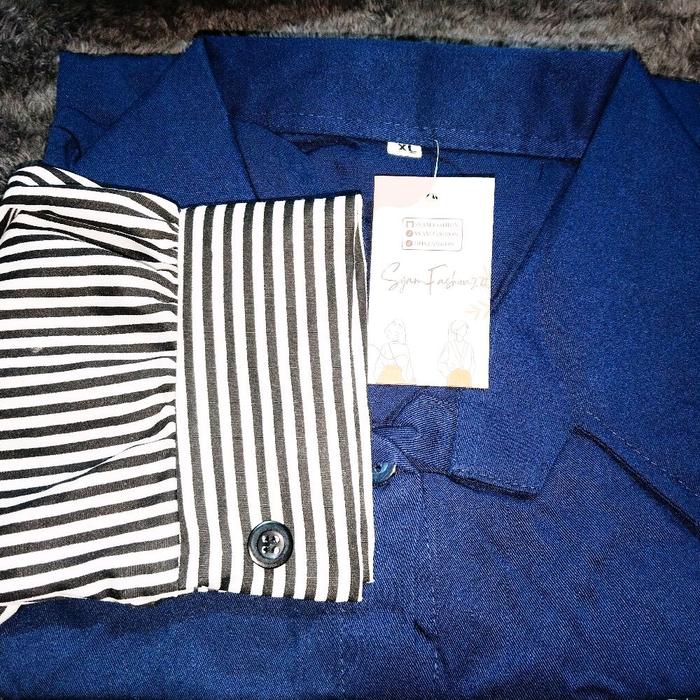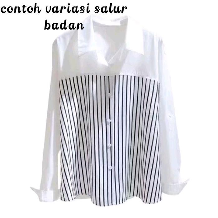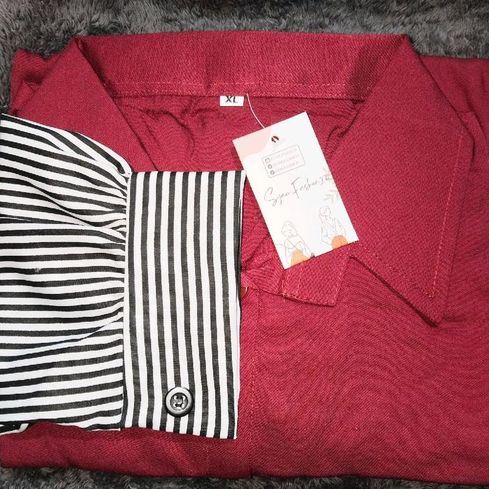 Kemeja Wanita Laila Kombinasi Rayon Twil Salur Kain Garis Cantik Tangan Panjang Nyama Blus & Kemeja Lembut Hitam Oversiz