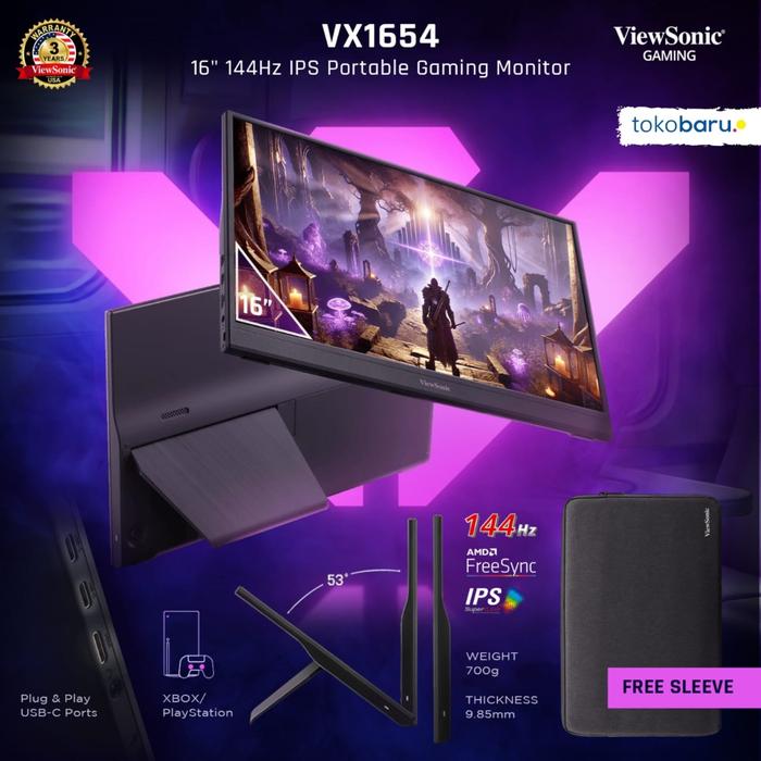 VIEWSONIC PORTABLE GAMING MONITOR VX1654 | IPS PANEL | 144HZ | AMD FREESYNC