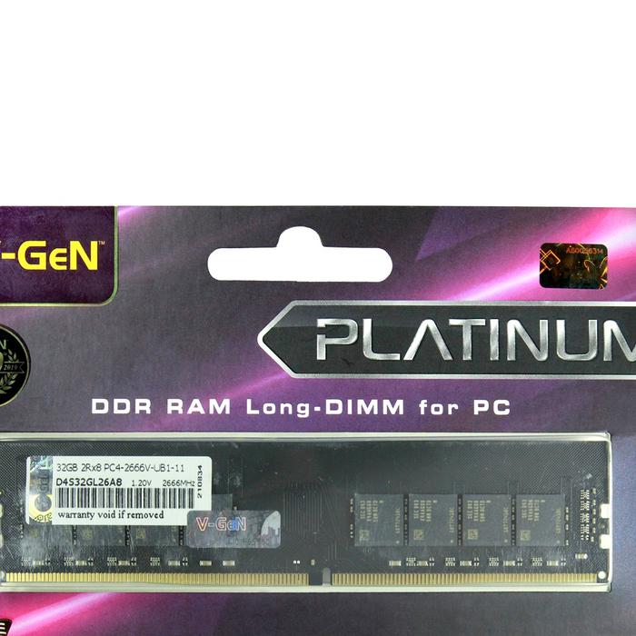 RAM DDR4 V-GEN PLATINUM 32GB PC21300/2666MHZ PC25600/3200MHZ LONGDIMM MEMORY PC VGEN - PC21300/2666MHZ