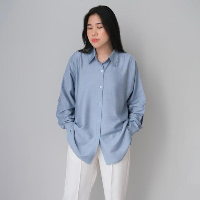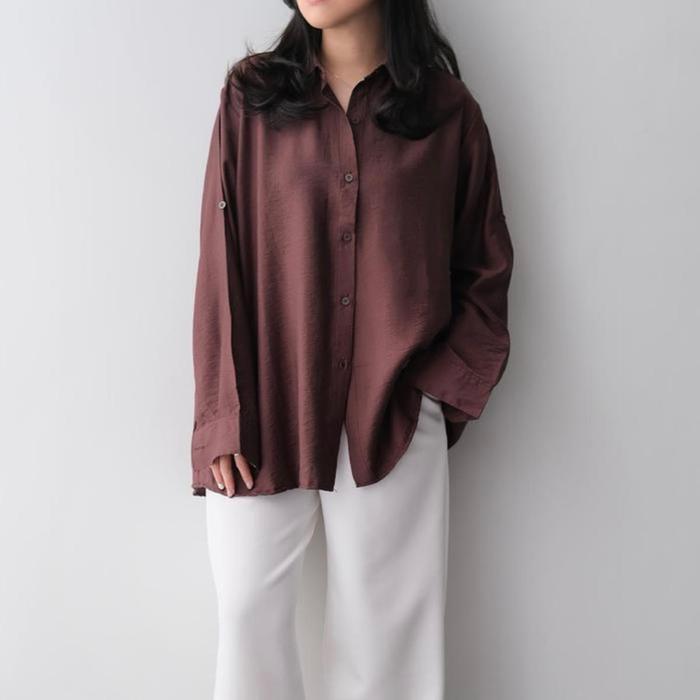 Kemeja Rayon Twill Premium Terbaru Atasan Wanita Kemeja Polos Terbaru Terlaris Lengan Panjang Bayar Ditempat - Hitam