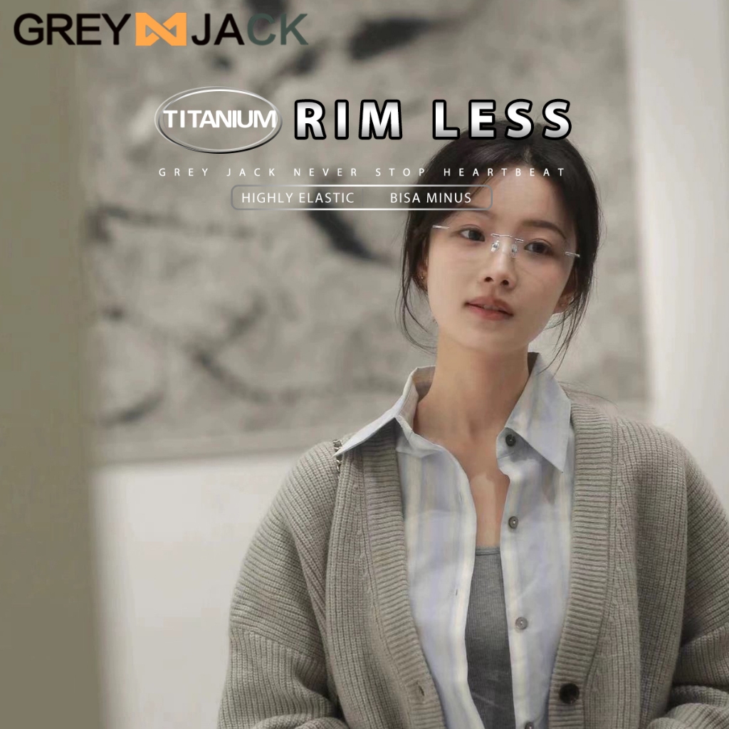 Grey Jack Kacamata Titanium Frame Model Rimless Fashion Style Bisnis Keren Ringan Kokoh Bisa Minus Antiradiasi Bluecromi