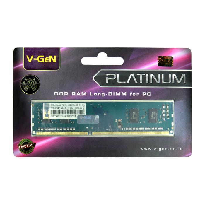 RAM DDR3 V-GEN PLATINUM 2GB PC10600/1333MHZ PC12800/1600MHZ LONGDIMM MEMORY PC VGEN - STANDART 1.5V, PC10600/1333MHZ