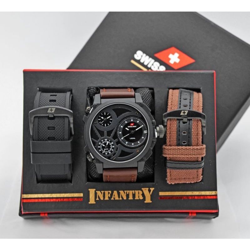 Jam Tangan Pria Swiss Infinity 3Time Kulit Set Paket