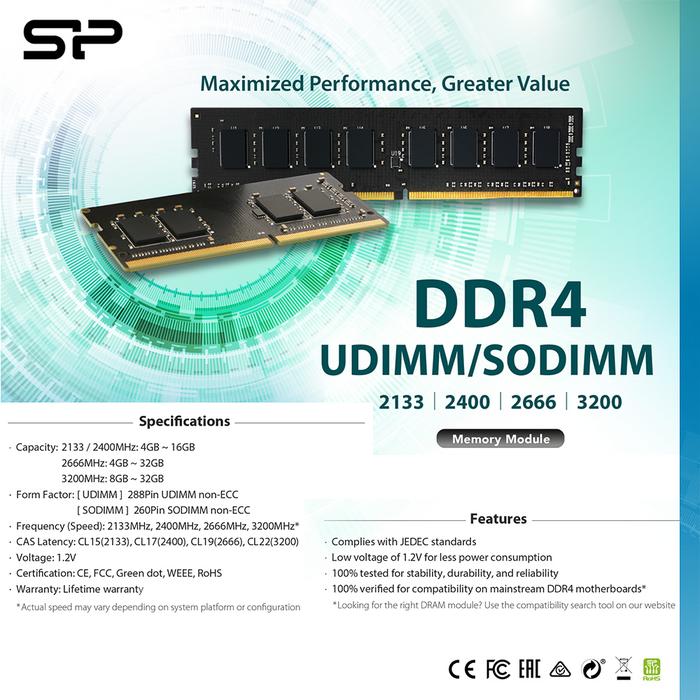 SILICON POWER DDR4 3200MHZ CL22 UDIMM – 32GB - 3200 32GB