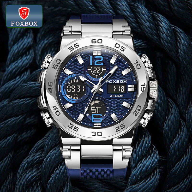 FOXBOX Jam Tangan Untuk Pria LED Tahan Air Olahraga Elektronik Jam Tangan Silikon Jam Tangan LIGE Jam Alarm Tanggal LIGE Jam Tangan