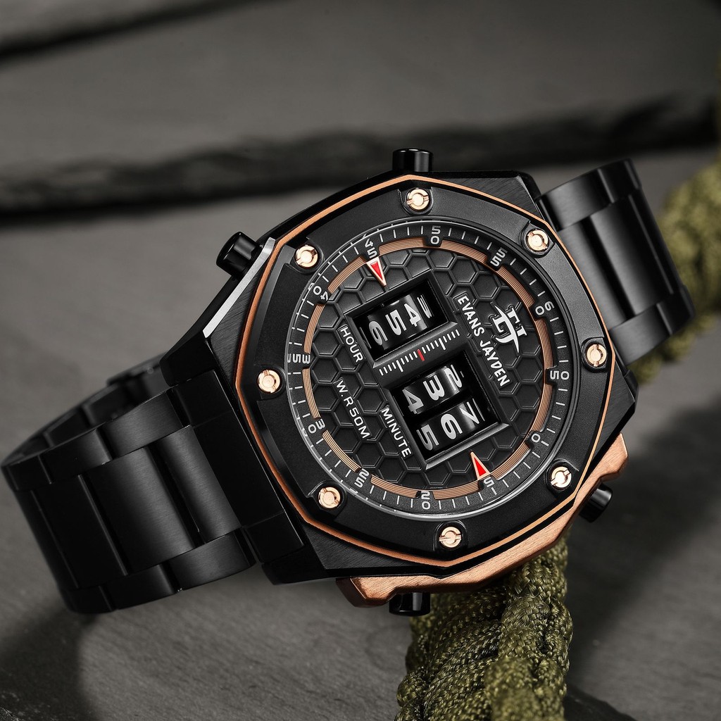 Jam Tangan Evans Jayden Jam Tangan Pria 9576 Rantai Stainless Steel Chronograph Kaca Sapphire Water
