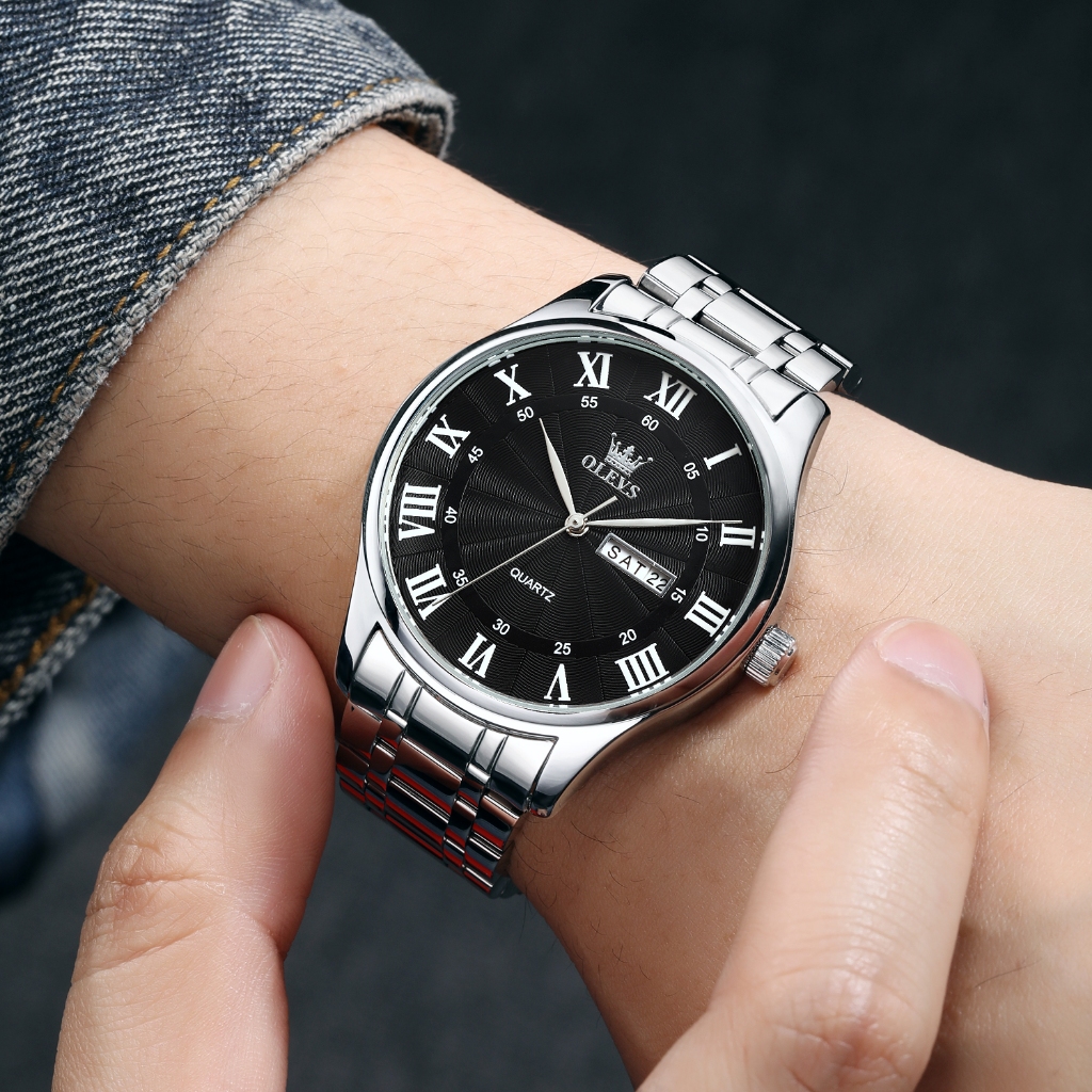 OLEVS Jam Tangan Pria Anti Air Original Analog Cowok Terbaru Fashion Hitam Luxury Watch Men