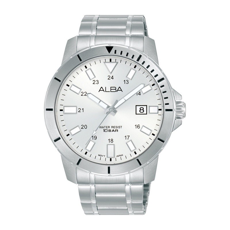 Alba Active Jam Tangan Pria AS9R99 / AS9R99X1 Quartz Silver White Dial Stainless Steel Strap Watch