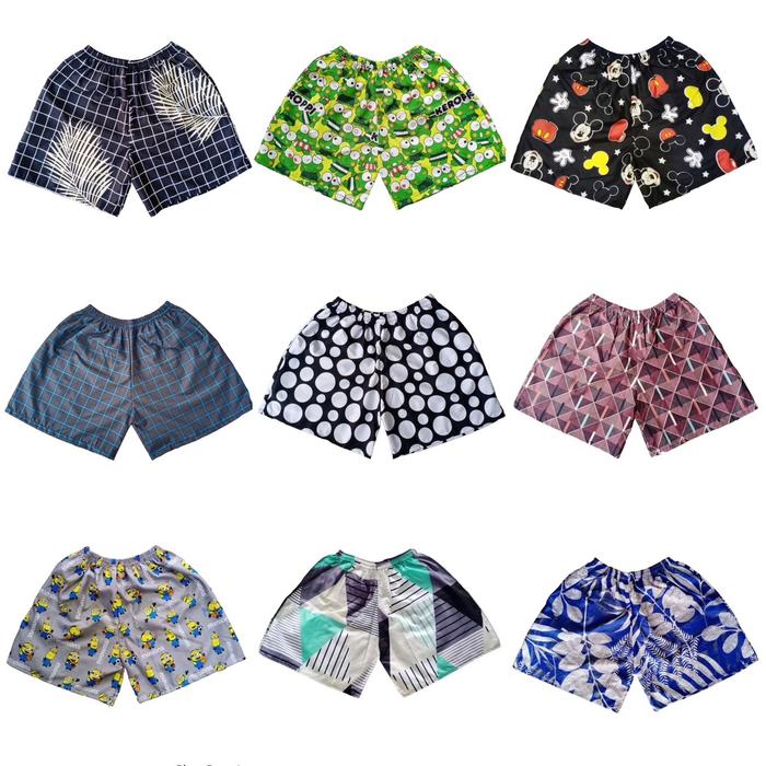 Paket 5 Pcs Celana Boxer Premium | Celana Santai Pria Wanita | Boxer Motif | Celana Pendek | Celana Kolor - 3 Pcs Motif