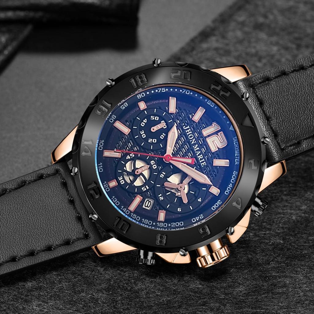 Jam Tangan Pria Jhon Marie 9507 Chrono Kulit Premium Original Blue Safier Bergaransi 12 Bulan