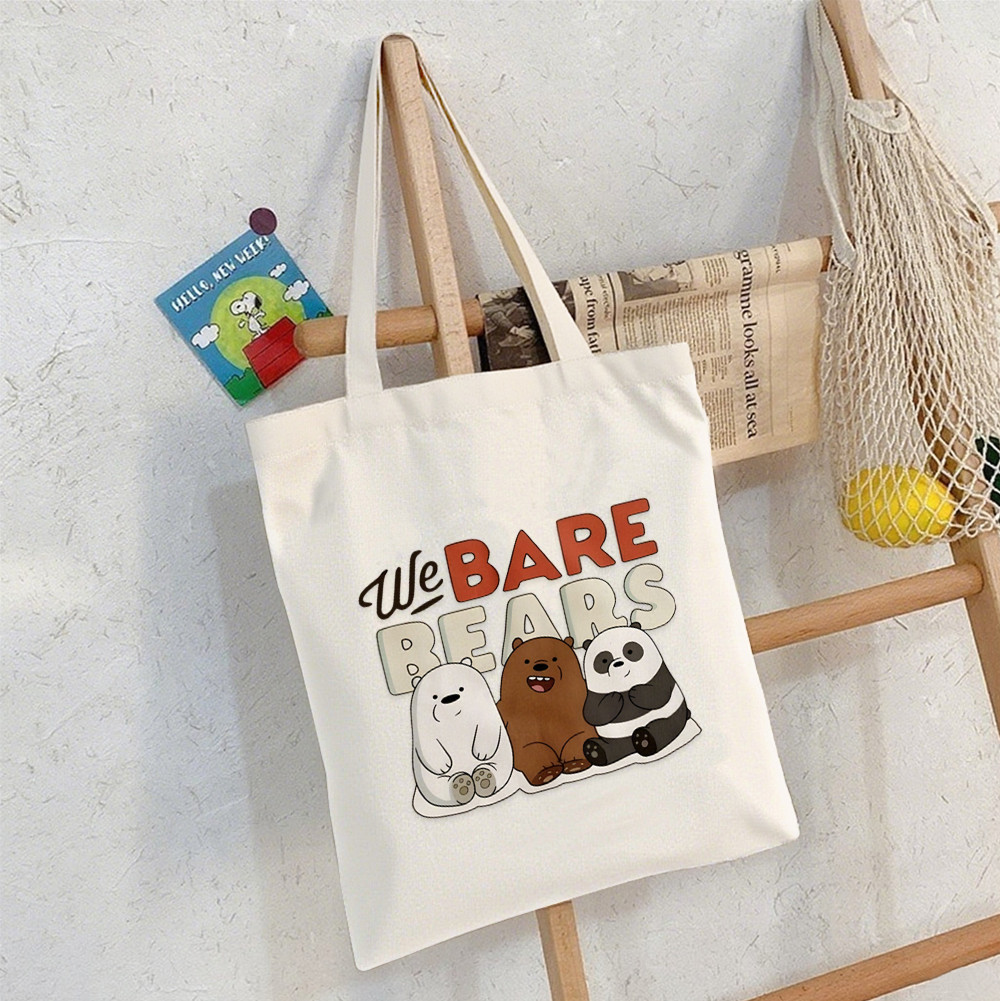 Singing Bear Canvas Tote Bag with Zipper for Women Large Capty Reusable Shopping Travel Bag