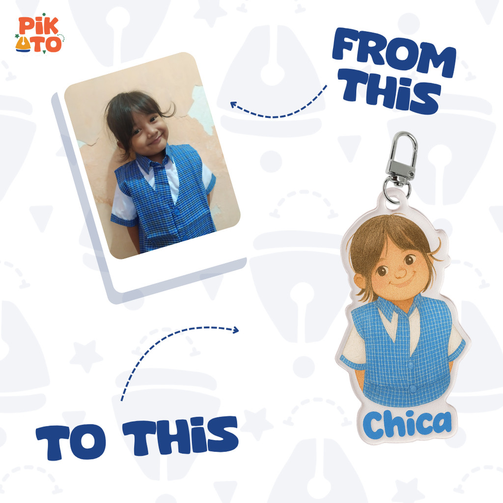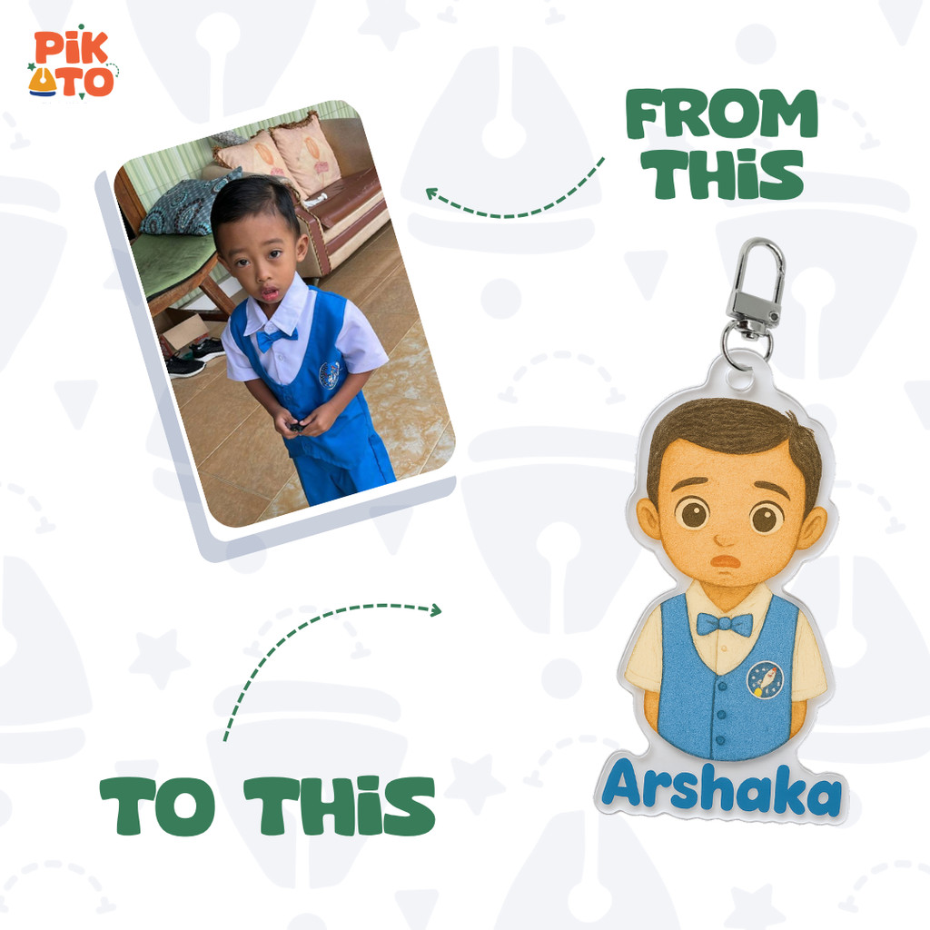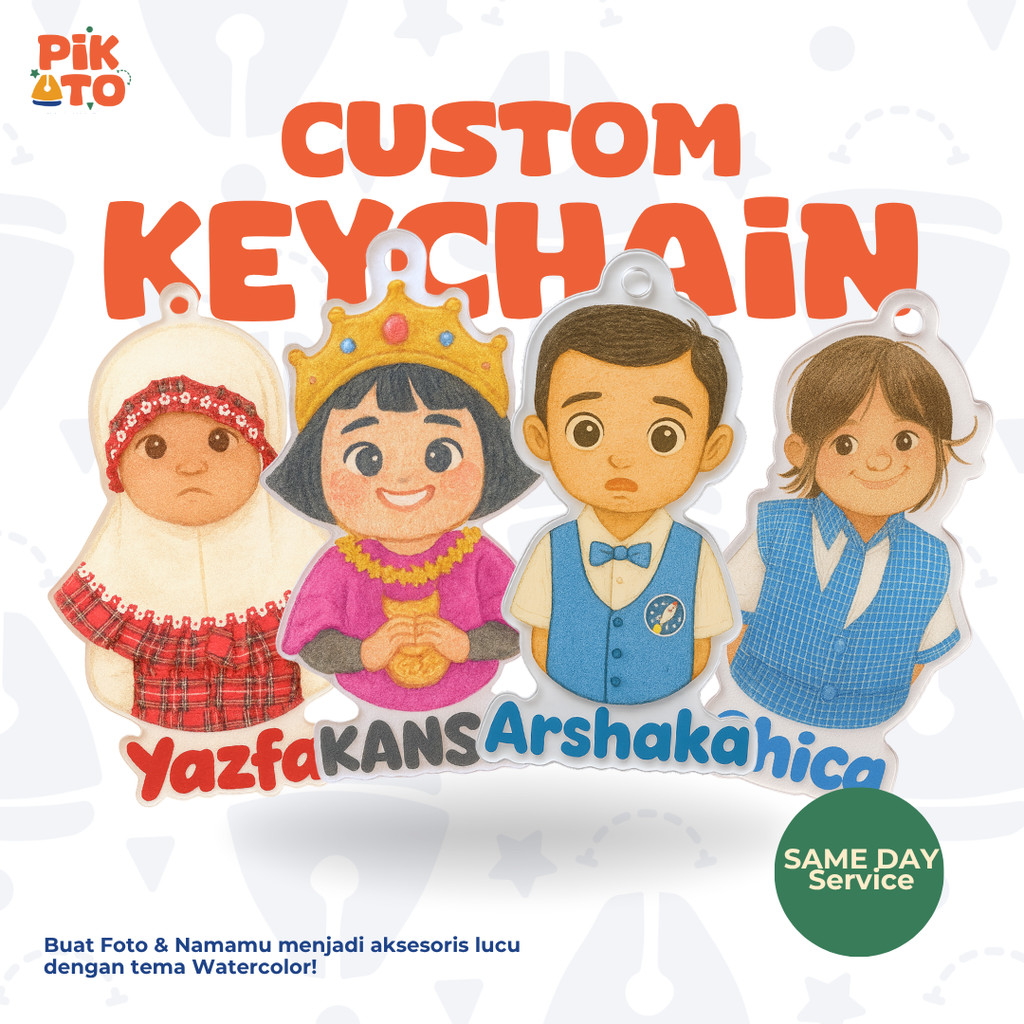 PIKATO Gantungan Kunci Custom Free Nama Style Watercolor Akrilik UV Print High Quality Keychain