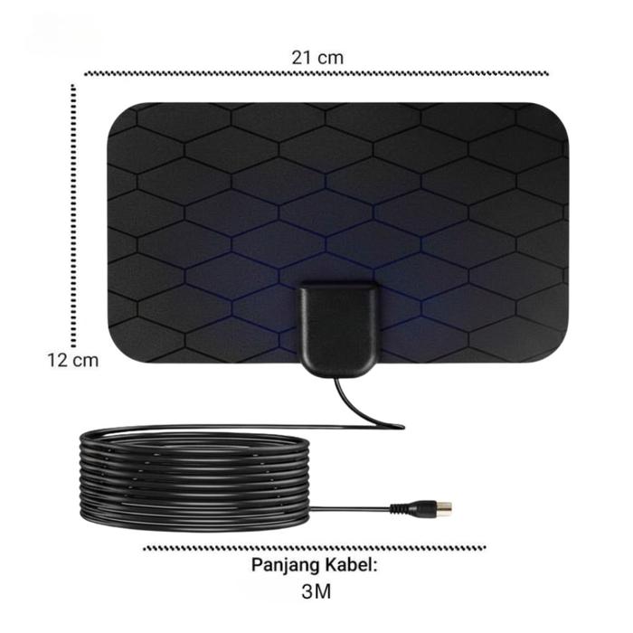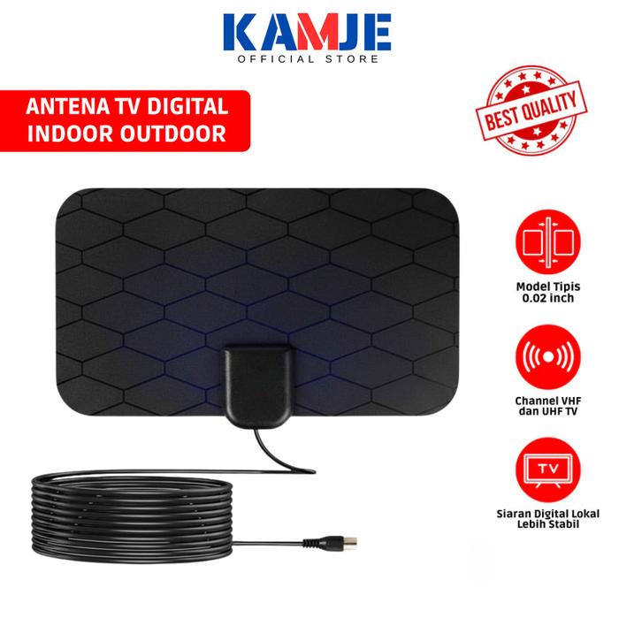 KAMJE Antena TV Digital Indoor 25dB DVB-T2 Jack Male Plug Sinyal Stabil Gambar Full HD KMJ7223 - Hitam