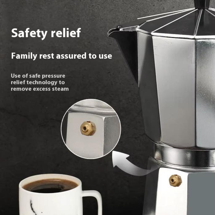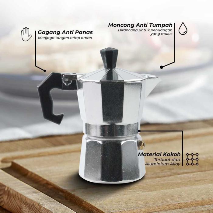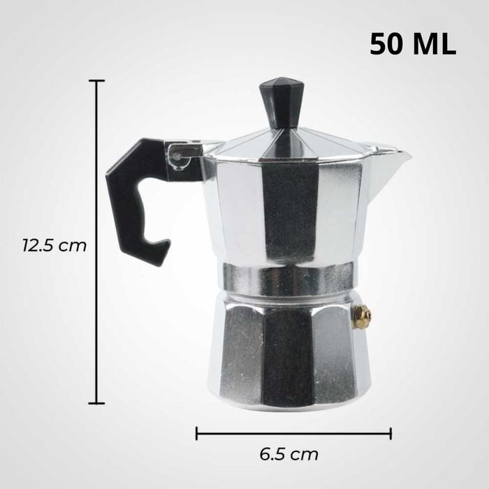 KAMJE Moka Pot Espresso Coffee Maker Stovetop Pembuat Kopi Espresso Manual Kompor Aluminium Alloy - 1 Cup 50ml, Silver