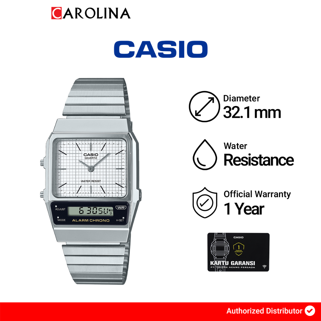 Jam Tangan Unisex Casio General AQ-800E-7A Dual Tone Digital Analog Dial Stainless Steel Band