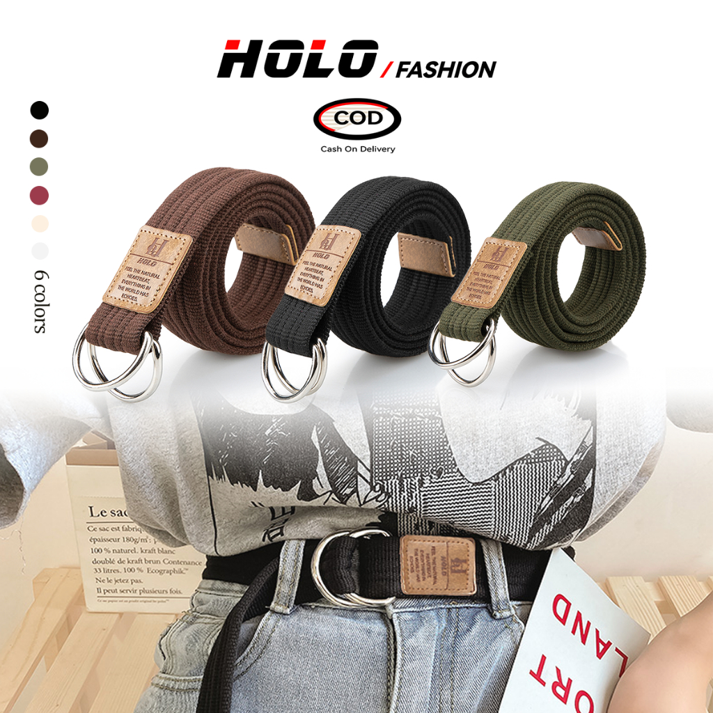 HOLO Ikat Pinggang Wanita Kanvas Sabuk Pria Adjustable Gesper Running Belt Unisex Sabuk Skena Style
