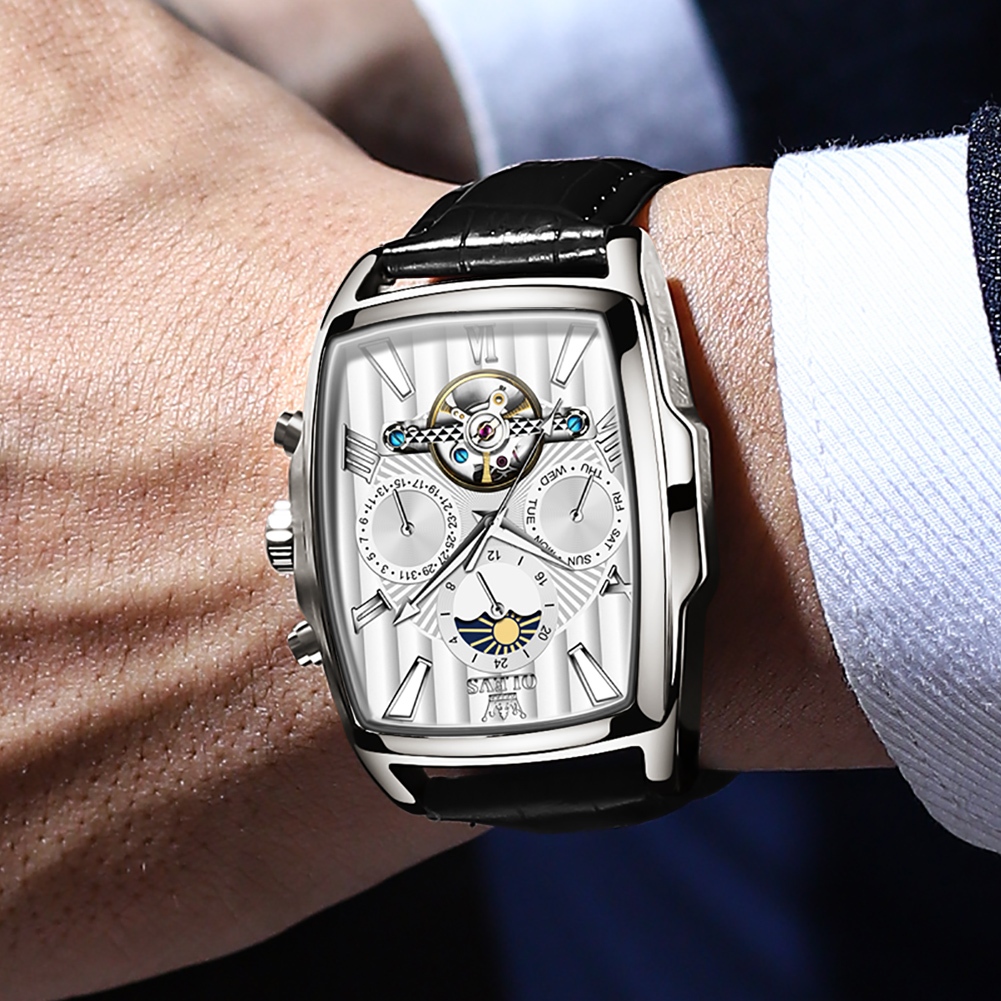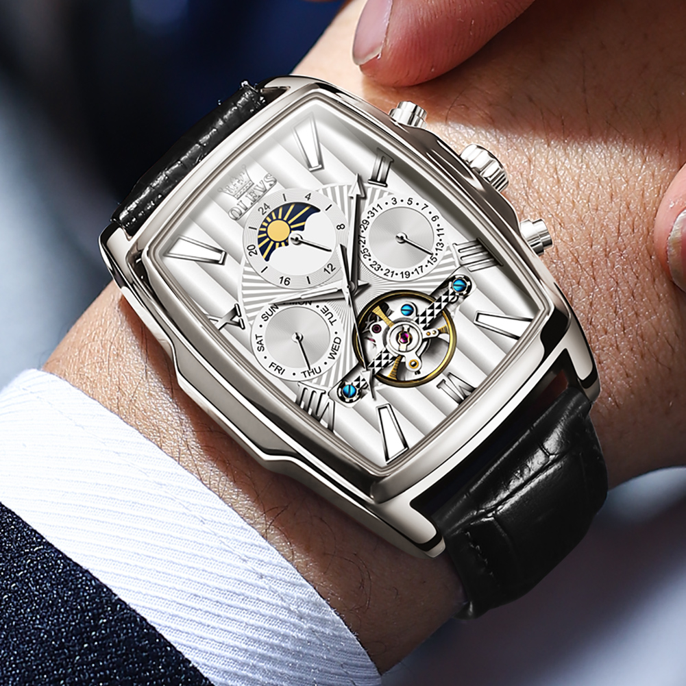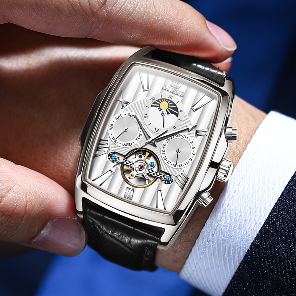OLEVS Jam Tangan Automatic Pria Anti Air Original Kulit Led Luxury Bercahaya Terbaru Persegi Fashion Men Watch