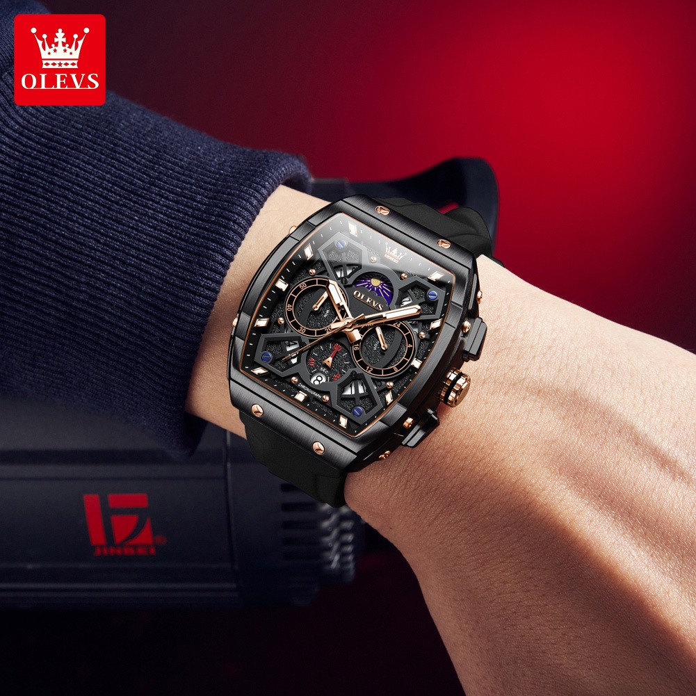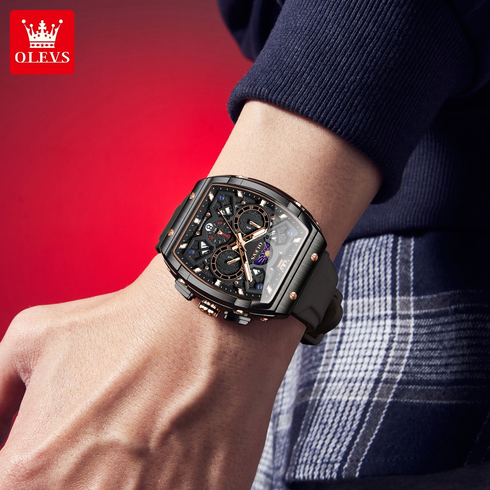 OLEVS Jam Tangan Pria Original 100 PERSEN Anti Air Mewah Arloji Pria Chronograph Analog Keren Fashion Men Watch Model 2942