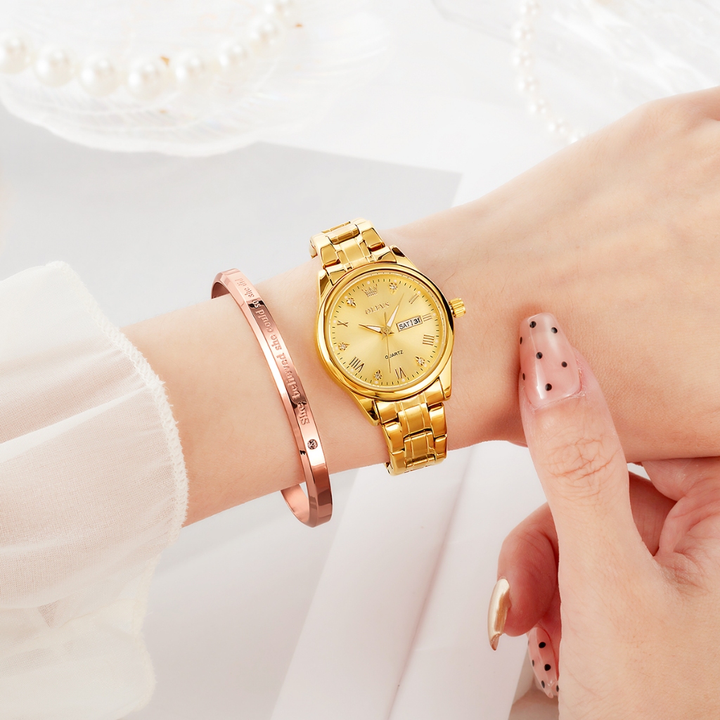 OLEVS Jam Tangan Wanita Original Anti Air Kecil Led Luxury 90ld Stainless Steel Women Watch