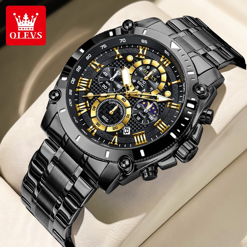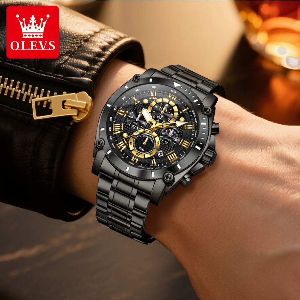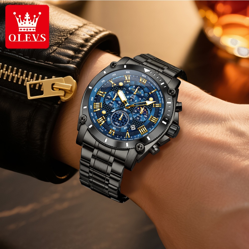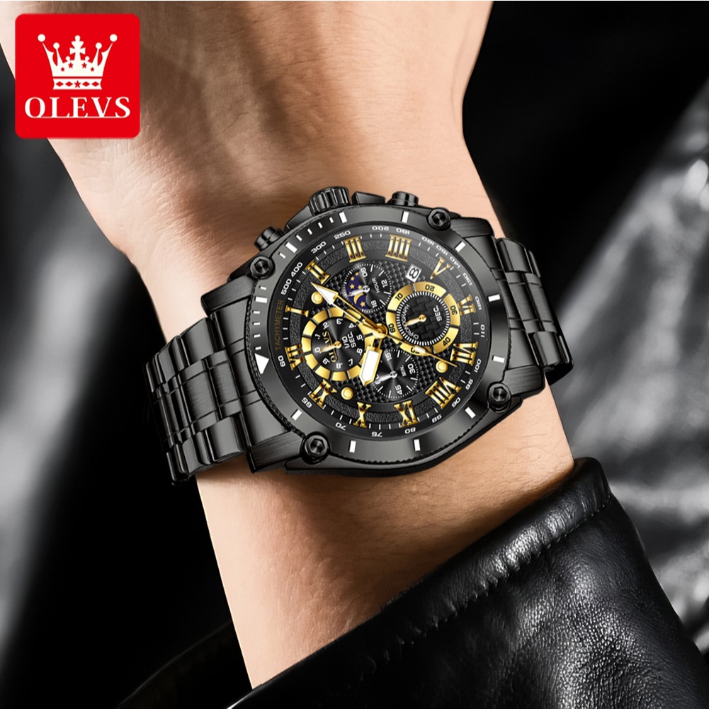 OLEVS Jam Tangan Pria Anti Air Original Stainless Steel 100 PERSEN Keren Terbaru Luminous Kalender Luxury Men Watch 3689