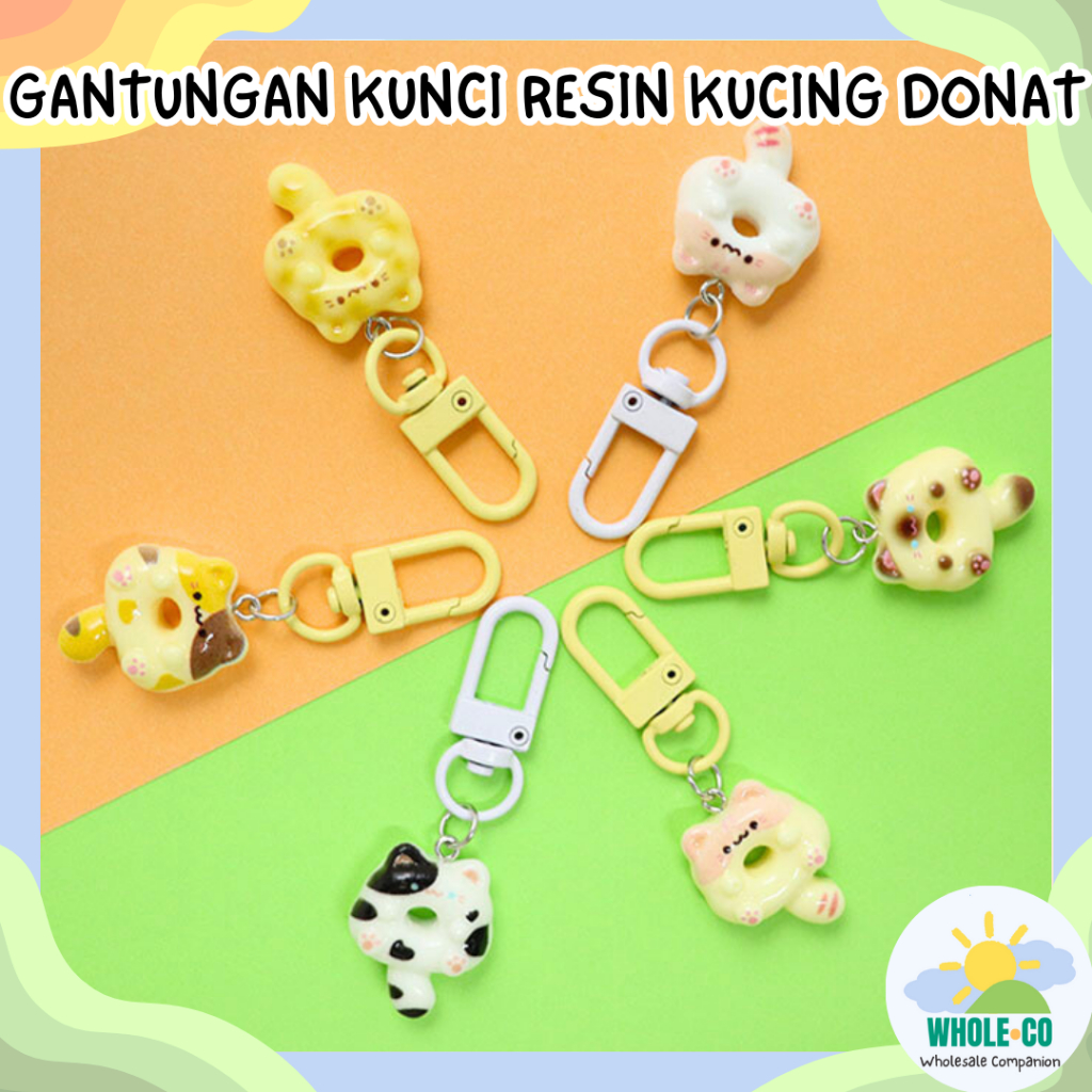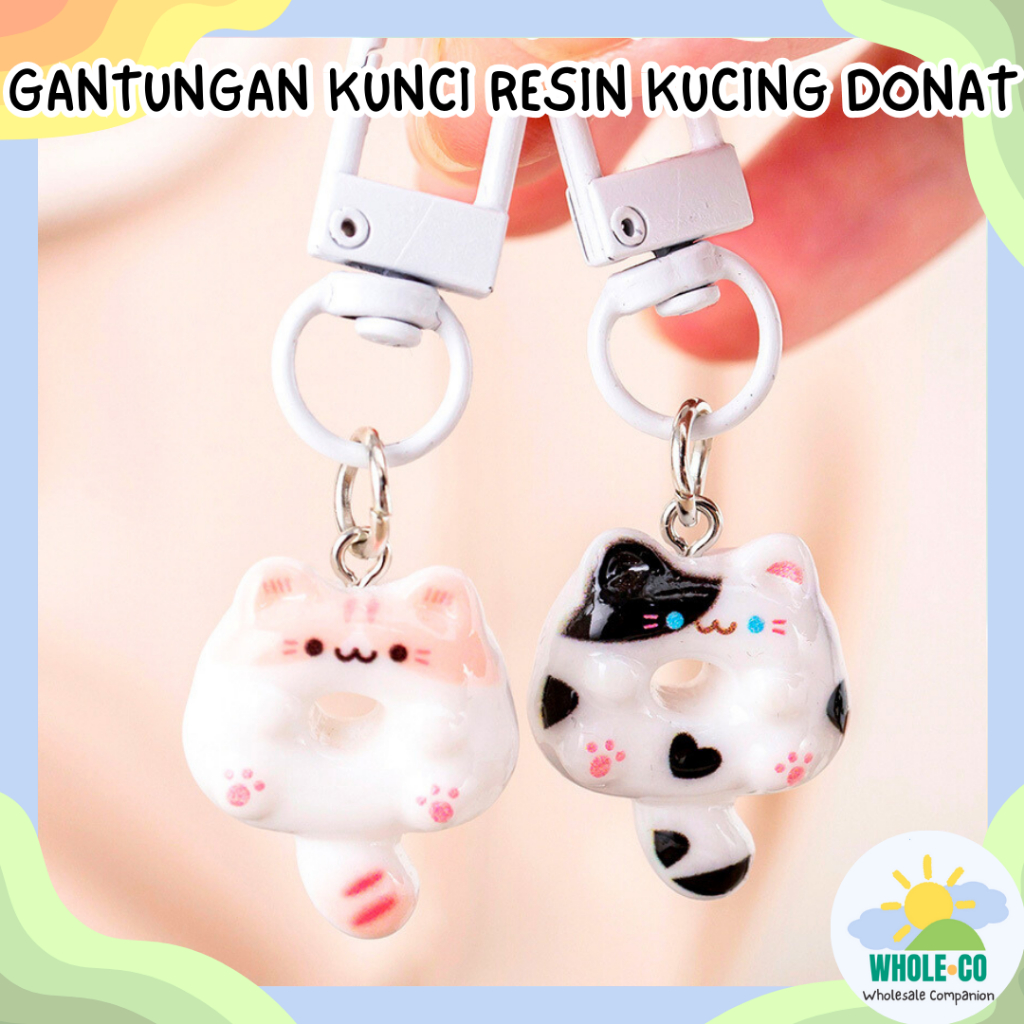 Gantungan Kunci Resin Kucing Donat Premium Donut Cat Sweet Pastel Lucu Unik Imut Termurah Grosir