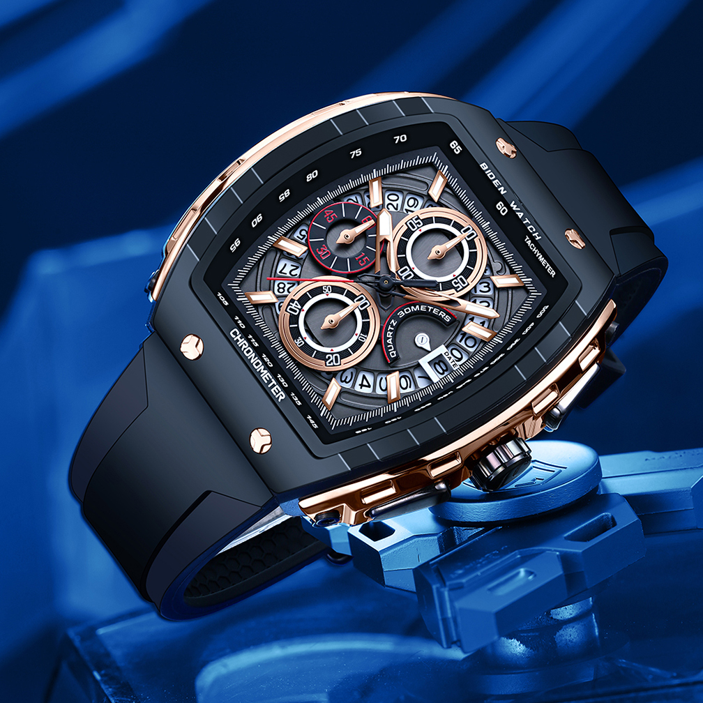 BIDEN Jam Tangan Pria Anti Air Olahraga Multifungsi Tali Silikon Pria Jam Tangan Cowok Original