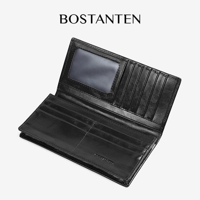BOSTANTEN Dompet Lipat Panjang Pria Slot Kartu Kulit PU Warna Hitam/Kopi